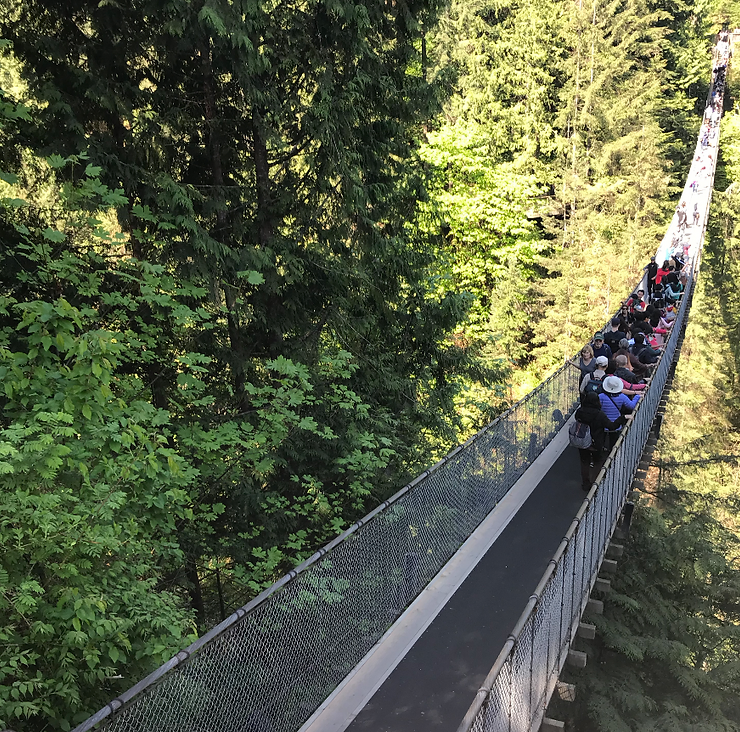 After our Ride around the city we began our trip to The Capilano Suspension Bridge. This bridge. This Bridge cross the Capilano River and the District of North Vancouver in British Columbia, Canada. The bridge is 460 ft long and 230 ft above the river.